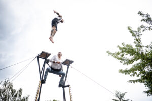 It tells the story of the touching and explosive relationship between an old circus artist and a young fellow who dreams of flying higher. Between generational conflict, admiration and rivalry, the duo search for each other, challenge each other, carry each other – sometimes crookedly – in a dance of fragile trust and self-confident imbalance.